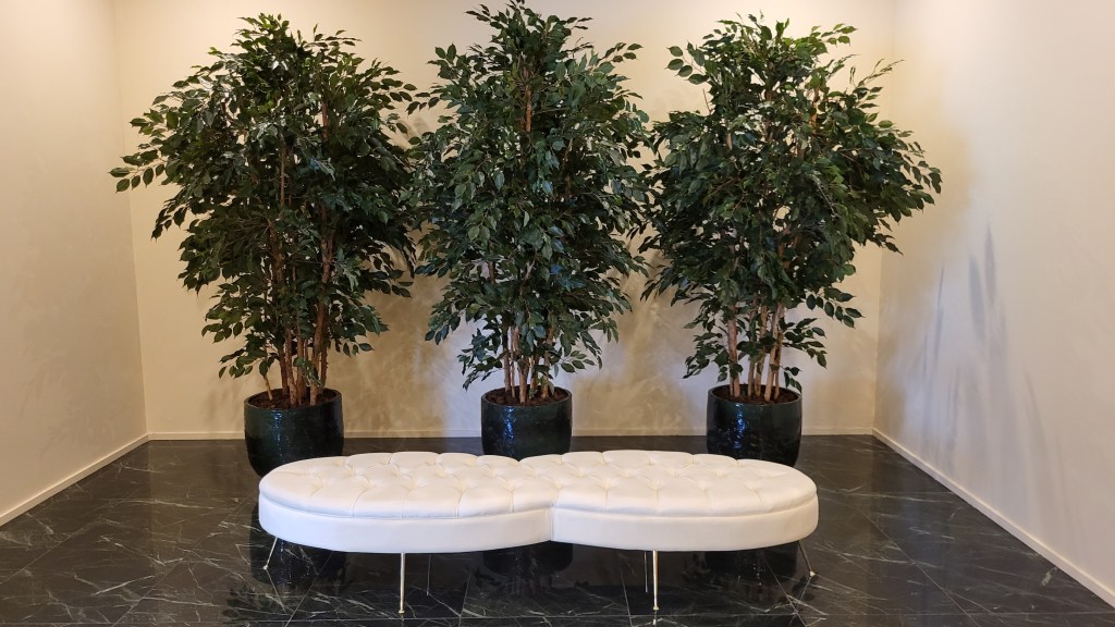 🔹 Ficus Benjamina – Con le sue fronde leggere e il tronco intrecciato naturale, regala un tocco di classe e armonia.