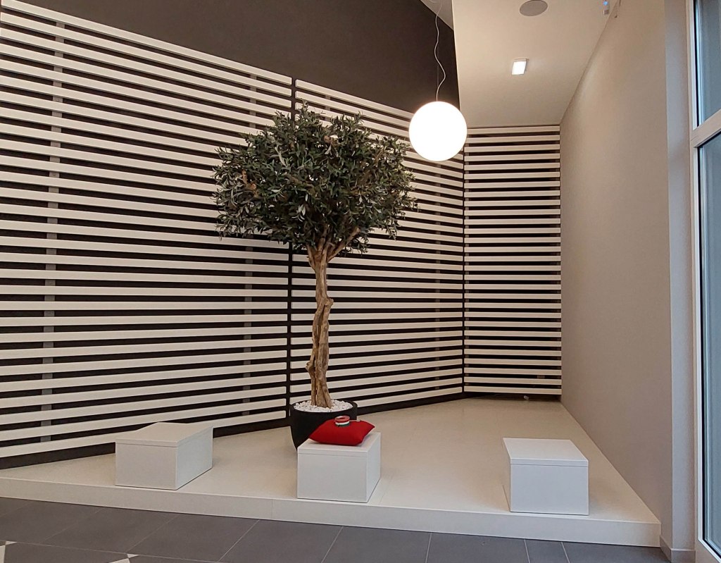La nostra sfida era quella di trasformare un ambiente neutro e sobrio in un luogo di pace e riflessione, dove i visitatori potessero trovare comfort e connessione con la natura e dove la proprietà non si deve preoccupare minimamente della manutenzione. Gli alberi artificiali della BM™ Luxury, con il loro maestoso fogliame e l’eleganza delle loro foglie, hanno donato un tocco di vita all’interno, creando un’atmosfera rilassante e confortante che non si potrebbe mai avere con le piante vere.